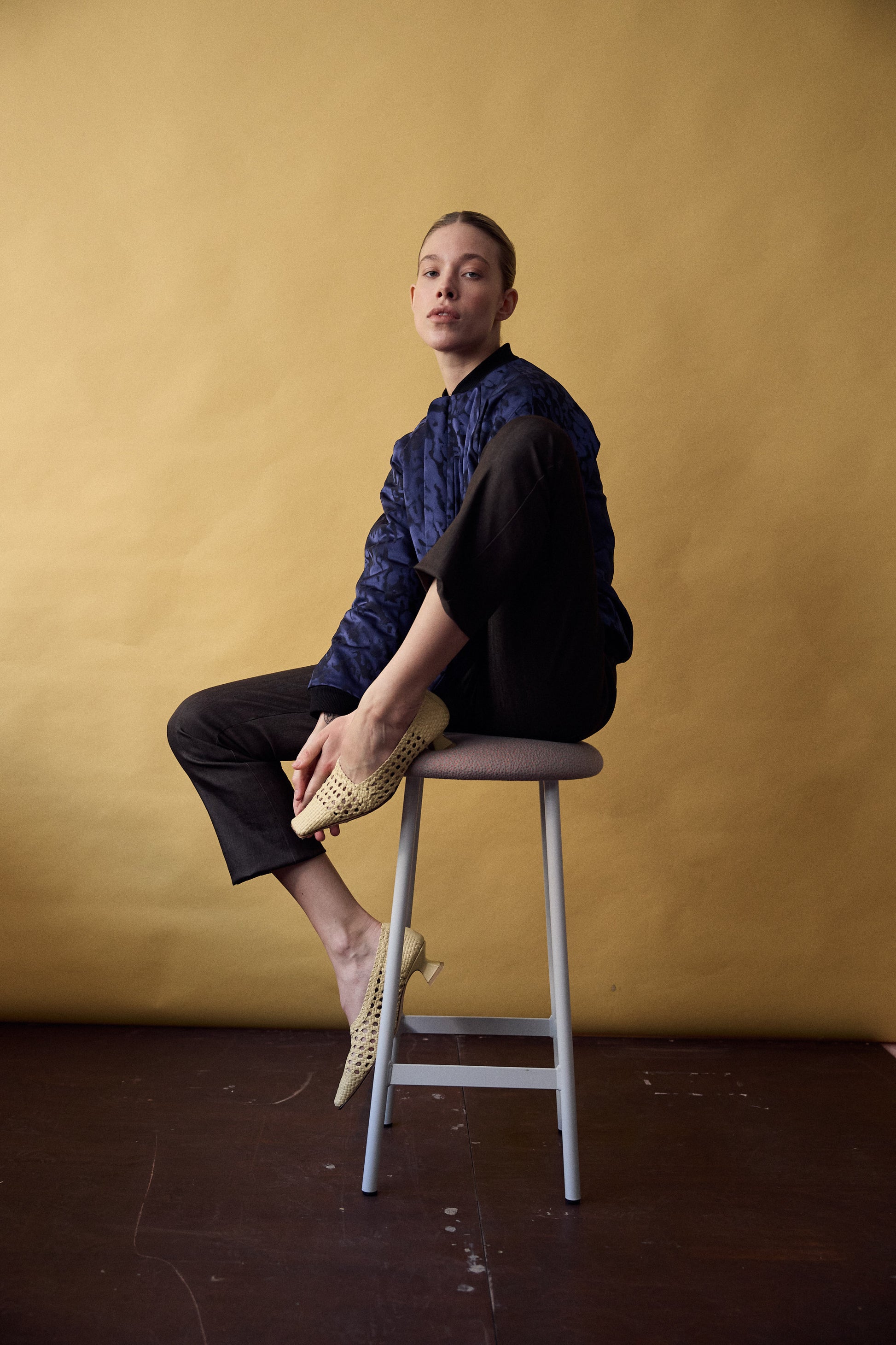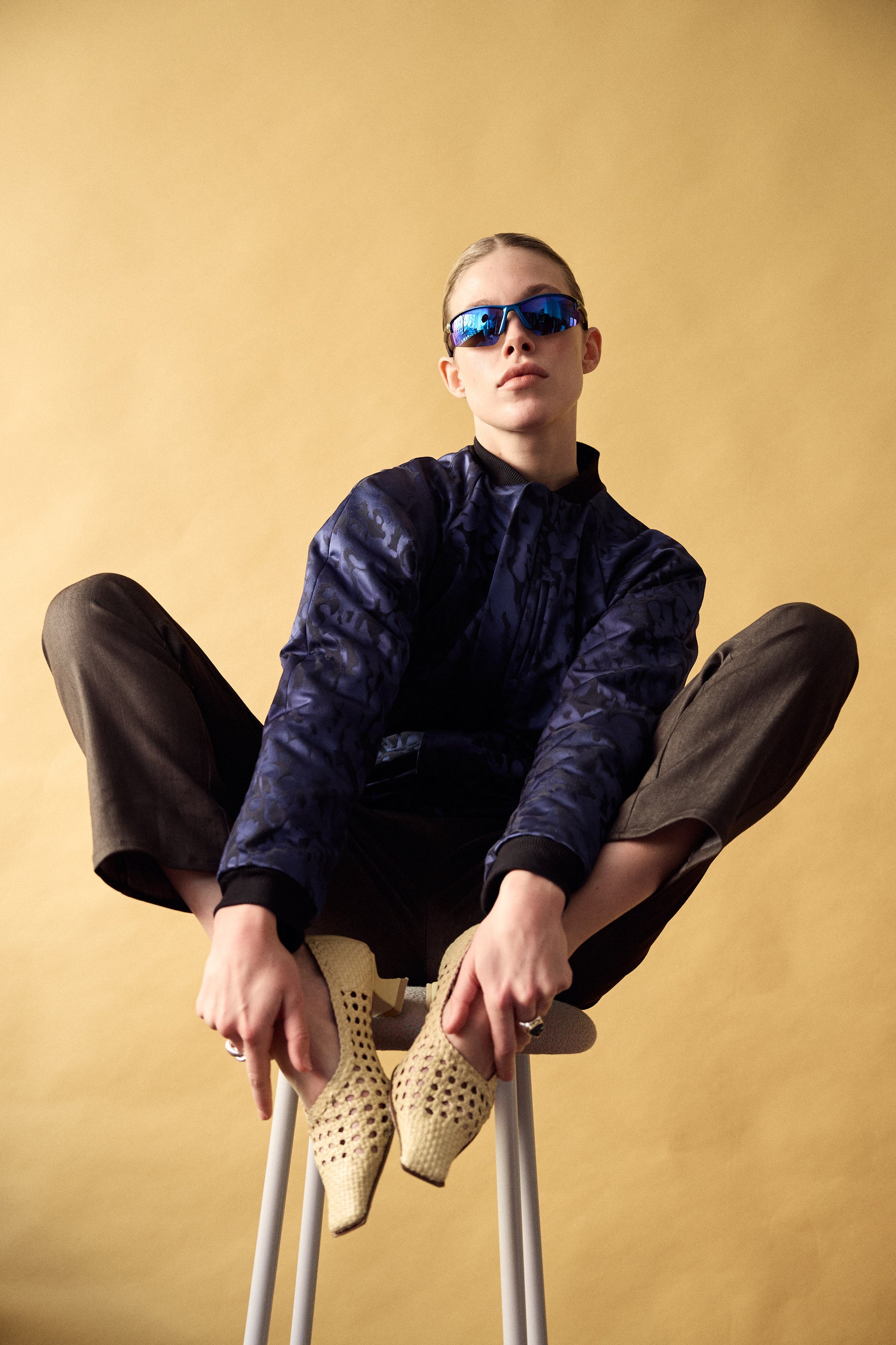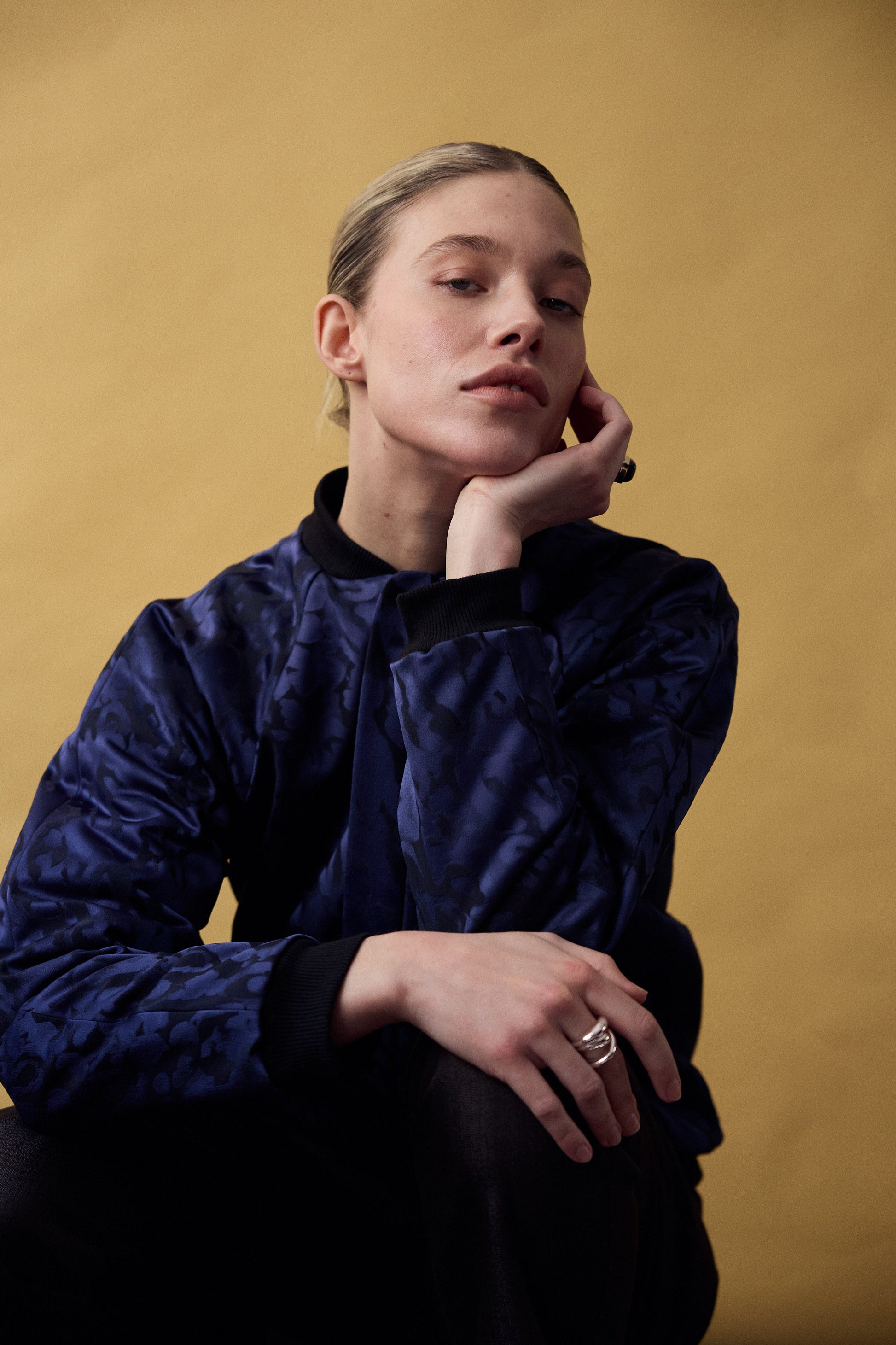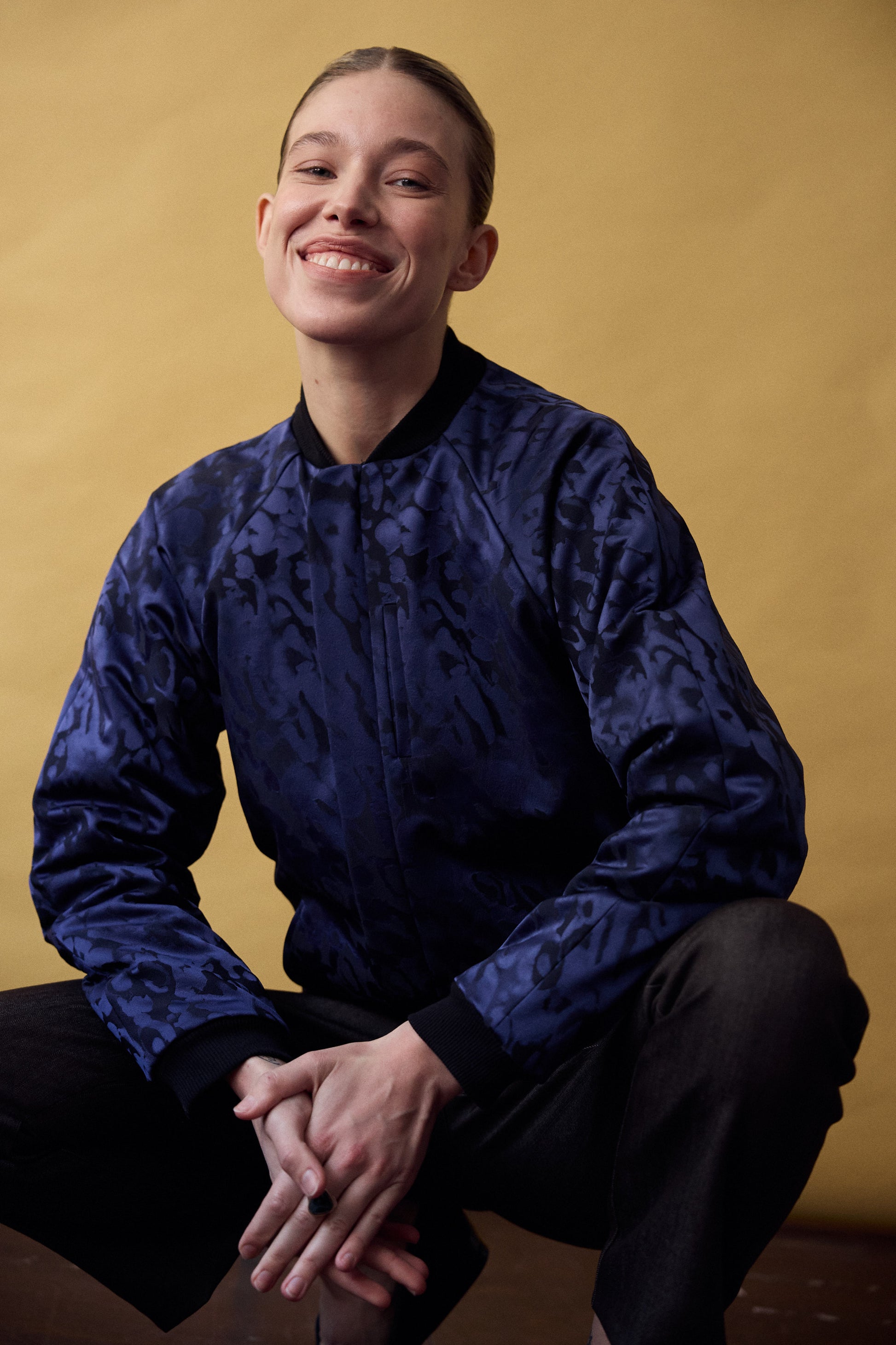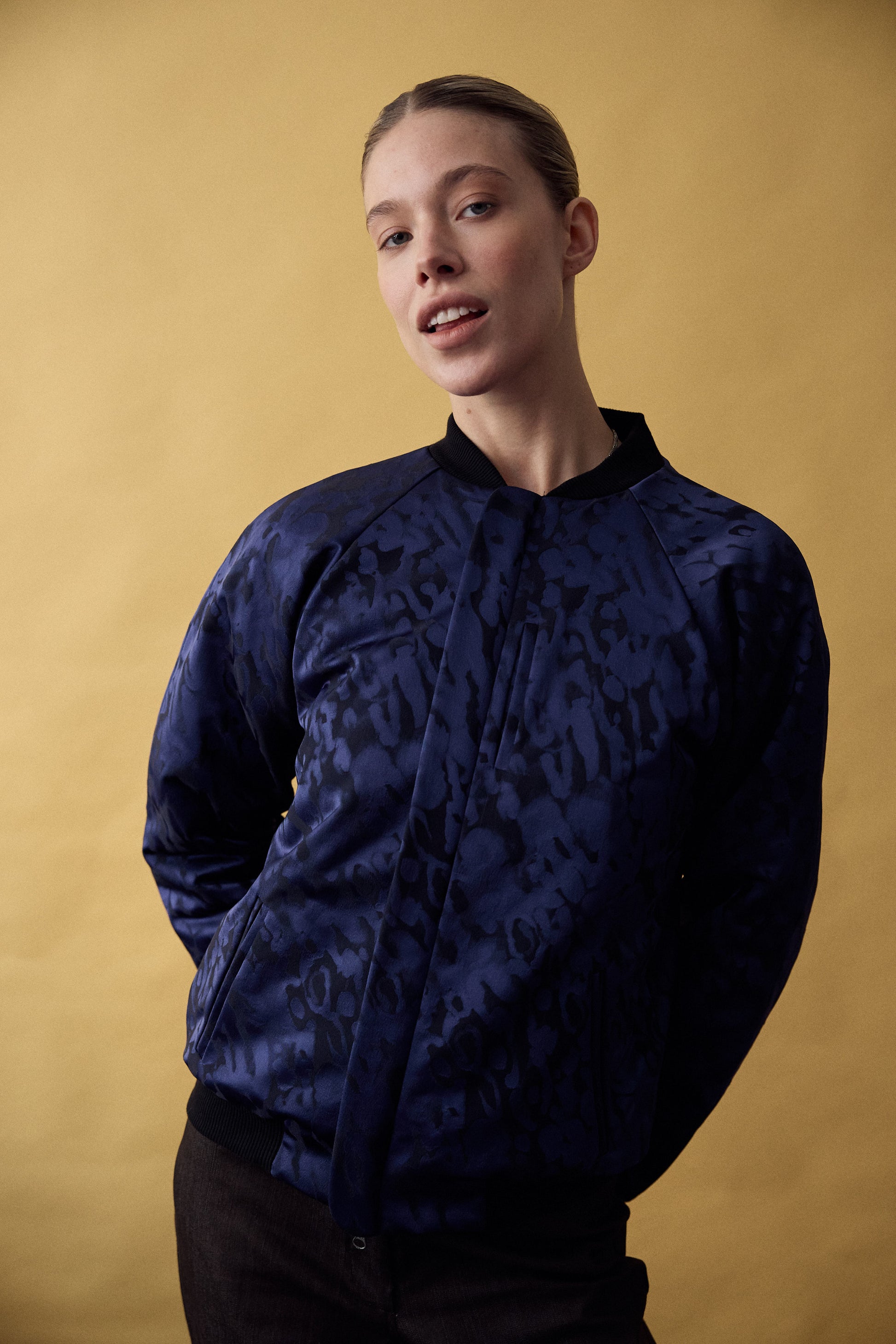 Kollektion Herbst / Winter 2025 - Jacke Uno: Bomberjacke mit Raglanärmeln. Die Jacke hat zwei diagonale Paspeltaschen und eine Blende entlang des Reißverschlusses. Oben im Brustbereich eine zusätzliche Tasche. Die Jacke ist mit einem schwarzen Steppfutter versehen.